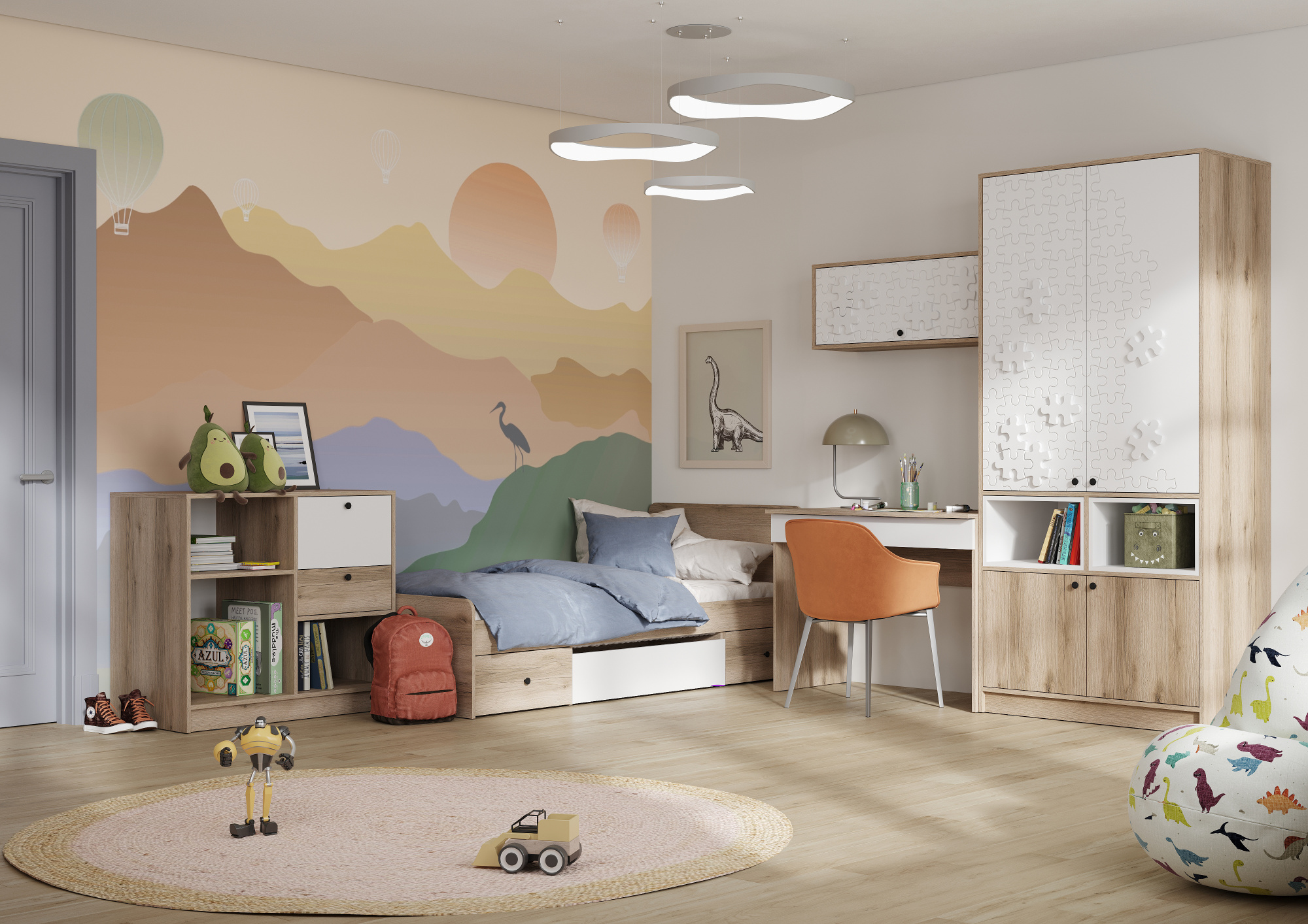 Новинка! Модульная детская Киви прекрасное решение для организации детской комнаты. Универсальный дизайн подойдёт мальчику и девочке. Разнообразие элементов, позволит собрать комплект, наиболее подходящий под вашу комнату.