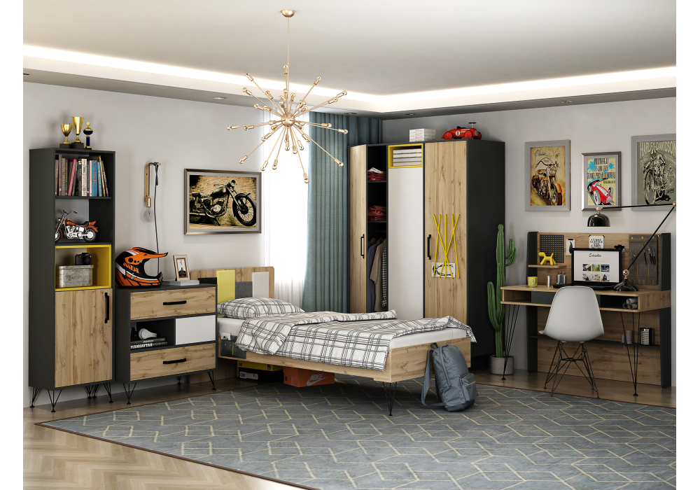 Стильная и современная мебель для детской. Интересный дизайн и детали позволят сделать подростковую комнату уютной и модной. Кровати выполняются со спальным местом 900х2000 или 1200х2000 (полноценная полуторка) для комфортного отдыха. Яркий интерьер с такой коллекцией вам обеспечен.