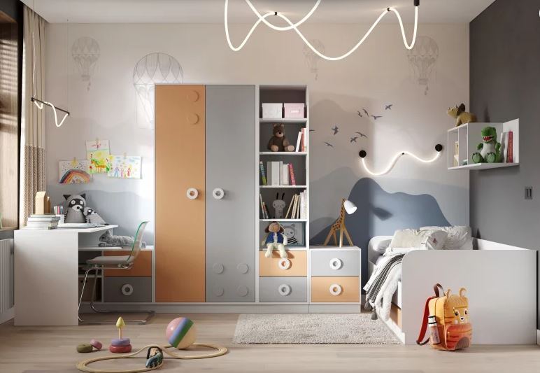 Детская мебель Турбо стильная модель для детской комнаты. Фасады выполнены в стиле лего, что обязательно понравится ребёнку. Благодаря универсальной расцветке, подойдёт в комнату мальчику и девочке.