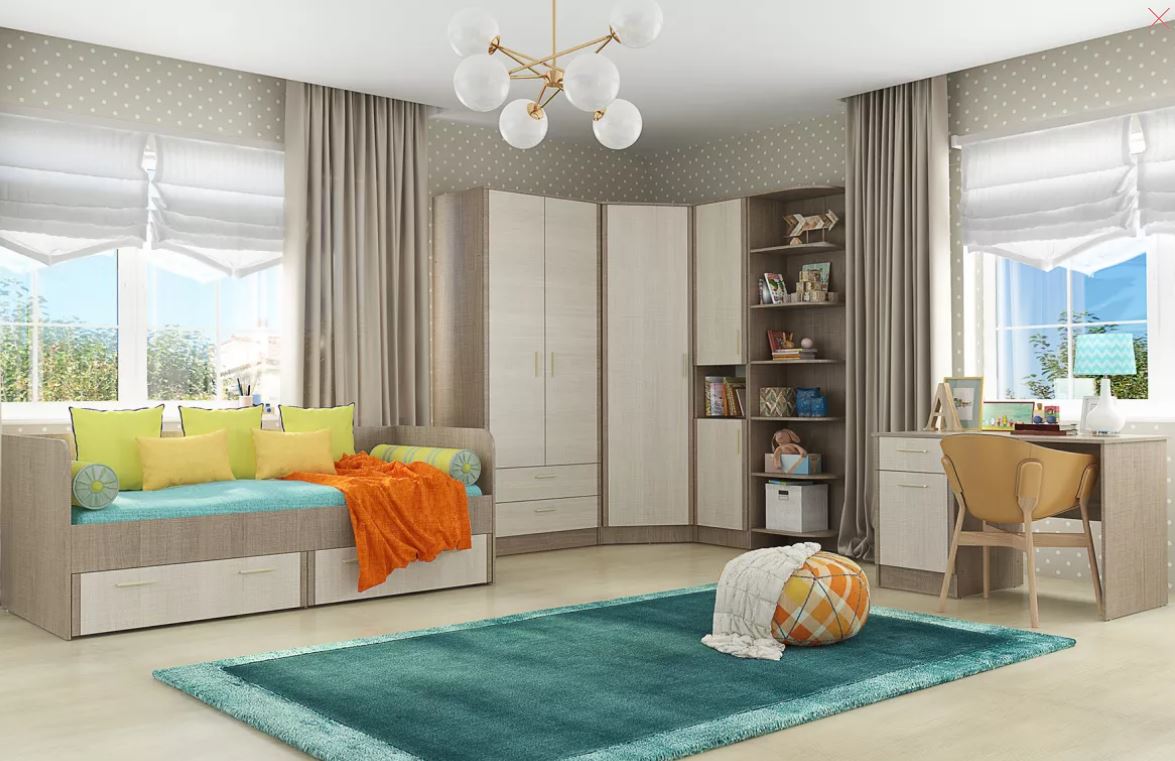 Модульная детская Юта рассчитана на разный возраст. Есть кровати с бортиком для деток от 2 лет, а есть кровати с полноценным спальным местом 900х2000 мм. Выполнена серия в сочетании тёплых тонов, что придаст комнате уют и комфорт. Подойдёт и мальчикам, и девочкам, благодаря нейтральной расцветке.