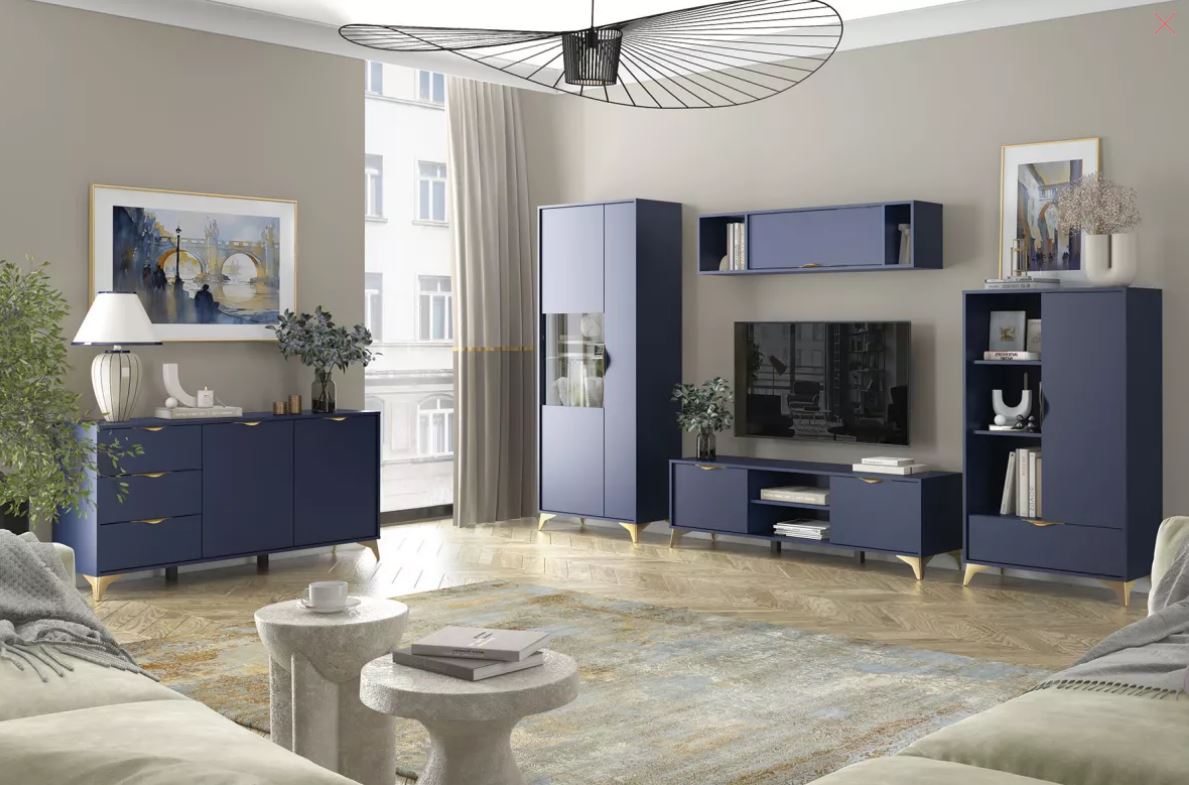 Необычное решение для современного дизайна. Глубокий, синий цвет делает коллекцию Челки очень интересной, а фурнитура золотого цвета добавляет изюминку.