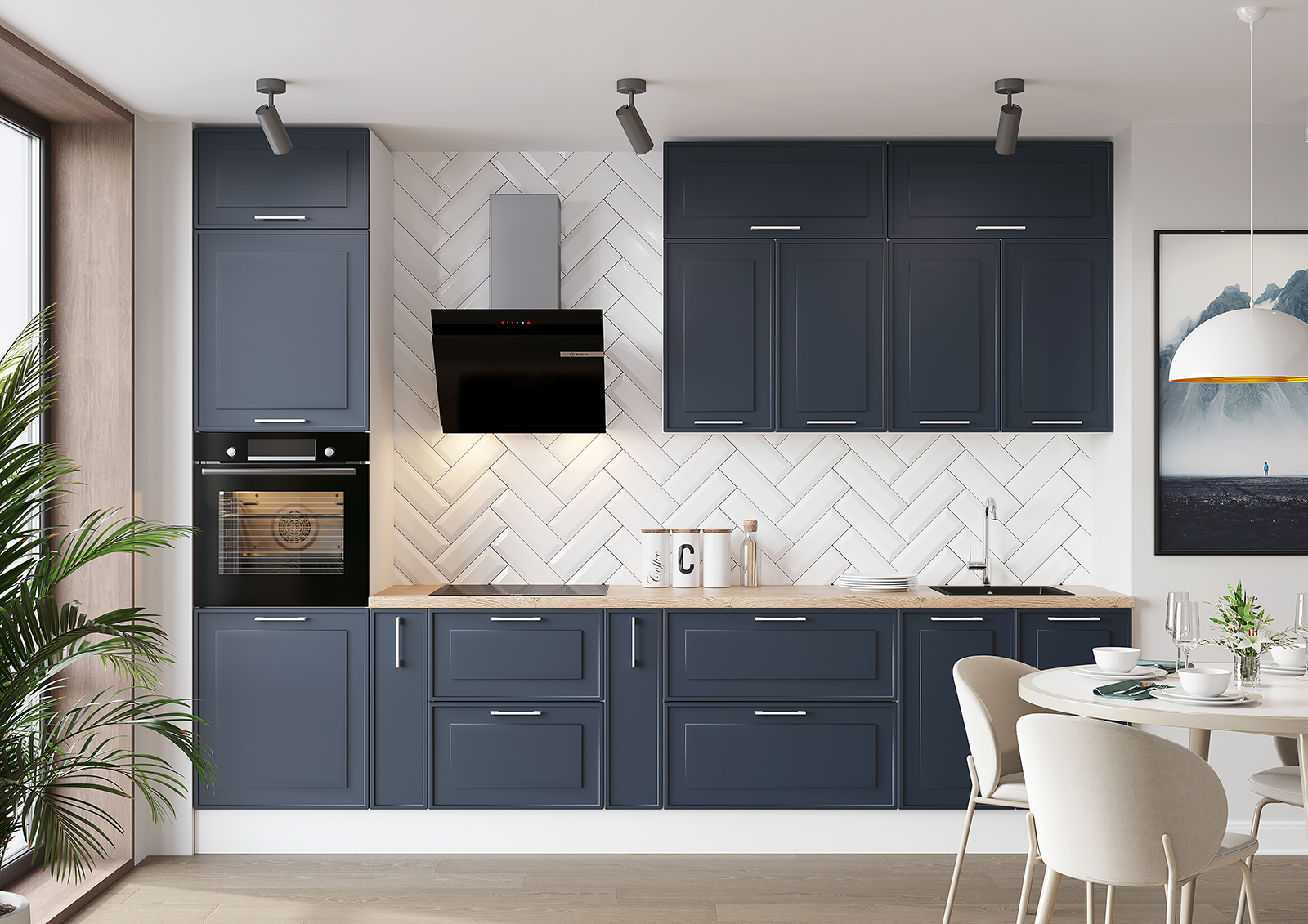 Фасады из МДФ, кухня с такими фасадами будет долговечной, влагостойкой, практичной и лёгкой в уходе. Разнообразие цветовых решений делает эту модель эстетичной и привлекательной.