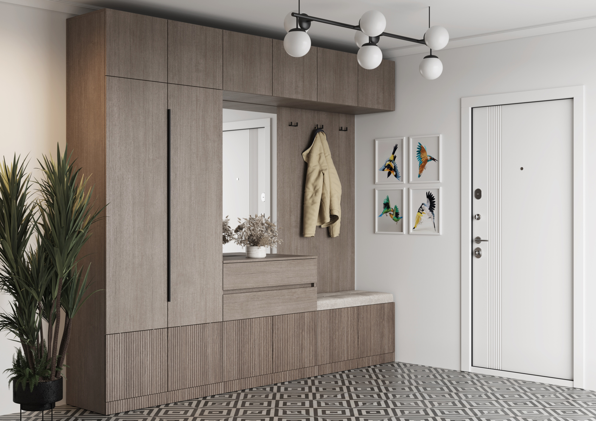 Прихожая Кантри стильная и современная модель. Никаких сложных узоров, натуральные тона сделают прихожую уютной и комфортной. Высота позволит максимально функционально использовать пространство.