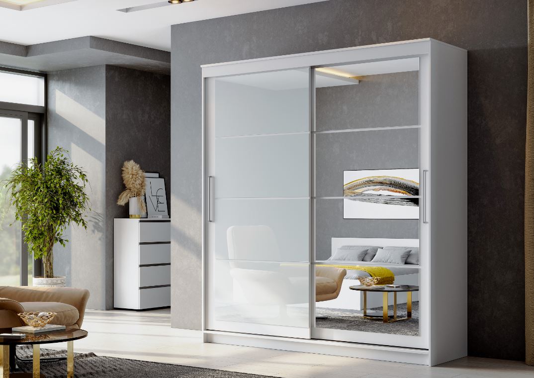 Стильный шкаф-купе в белом структурном цвете. Выполняется с шириной 1600 и 2000 мм.