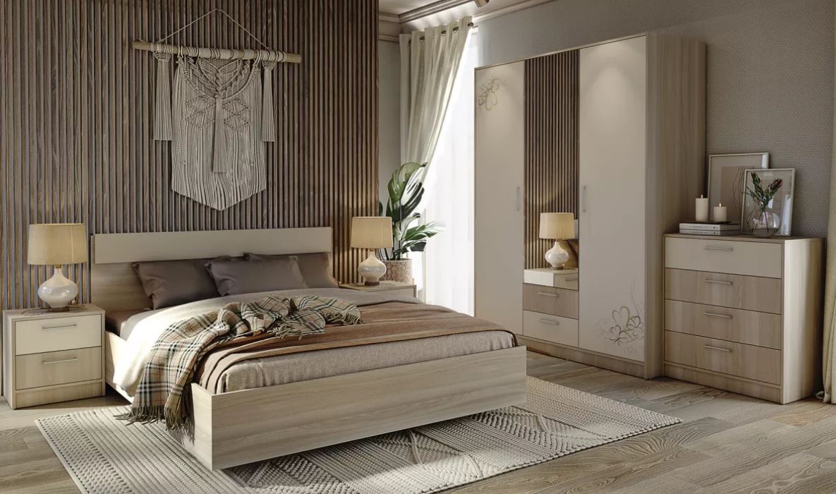 Спальня Камила это современное решение для оборудования комнаты. Ничего лишнего, всё самое необходимое в стильном дизайне. Фотопечать на фасаде шкафа придаёт особую изюминку. Сочетание тёплых тонов в цветовом решение сделает интерьер комфортным и спокойным.