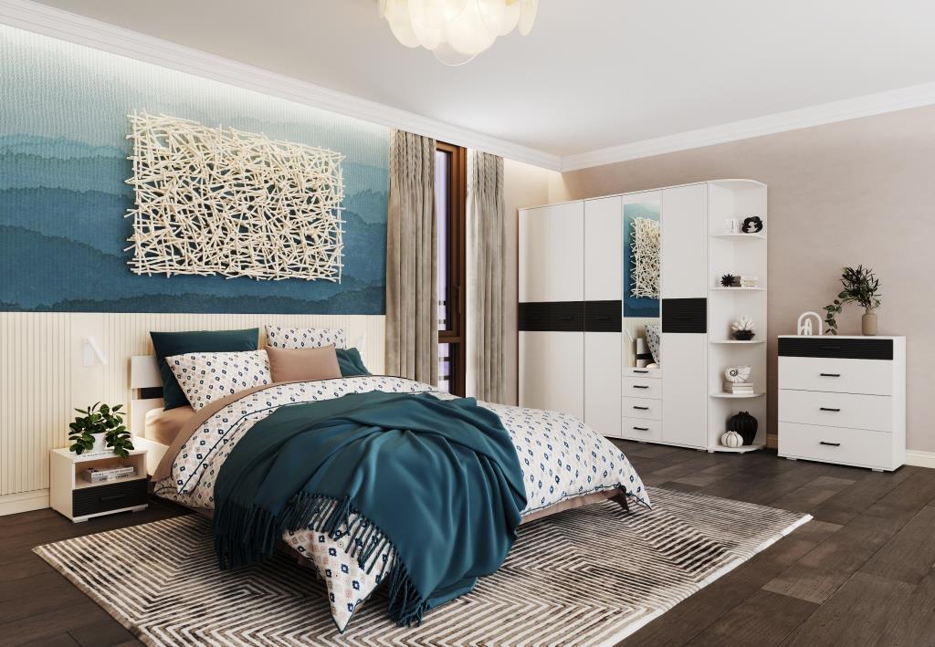 Спальня Сити выглядит очень стильно и современно. Кровать с ортопедическим основанием для комфортного отдыха. Добавьте декор, который разбавит монохромную гамму. Это могут быть картины с черно-белыми фотографиями, зеркала с интересной рамой, черные или белые часы. Интересный декор подчеркнёт дизайн спальни Сити.