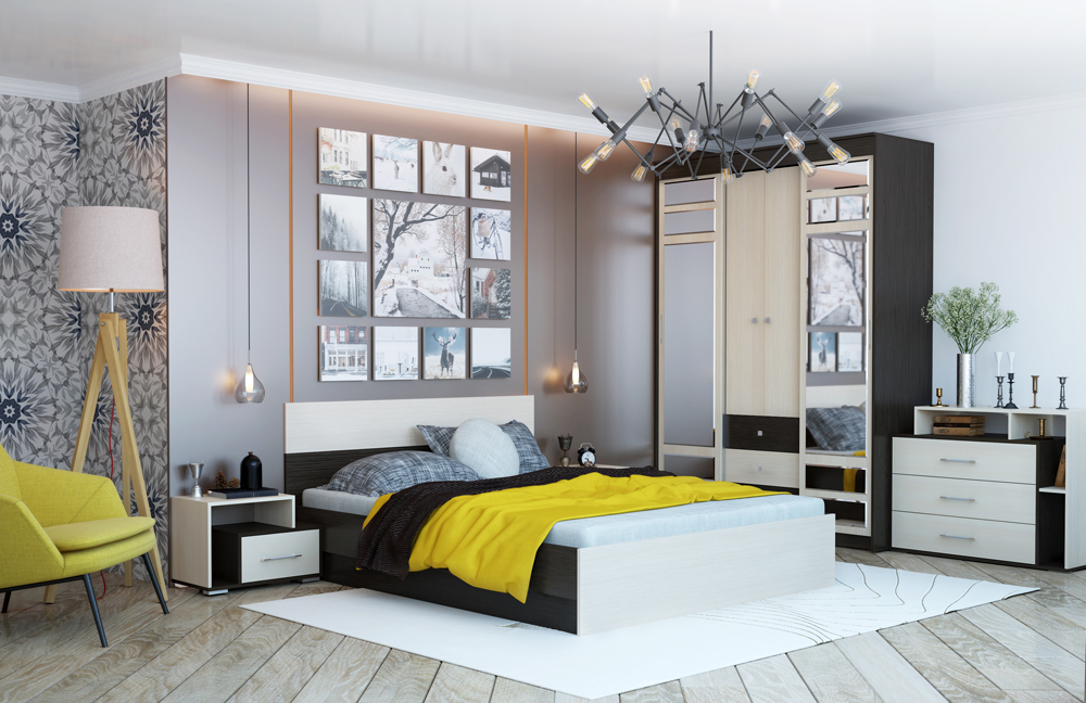 Доступная, стильная и функциональная спальня выполненная в комбинированных цветах.