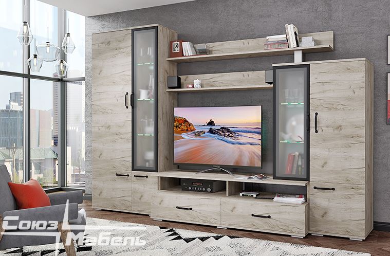 Гостиная Смарт с множеством отделений может быть отличным решением для организации пространства в гостиной. Она предоставляет множество возможностей для хранения различных предметов, от книг и декоративных элементов до одежды. Стенка Смарт гармонично впишется в интерьер. Полки можно дополнить диодной подсветкой. Обратите внимание на эту стильную гостиную.