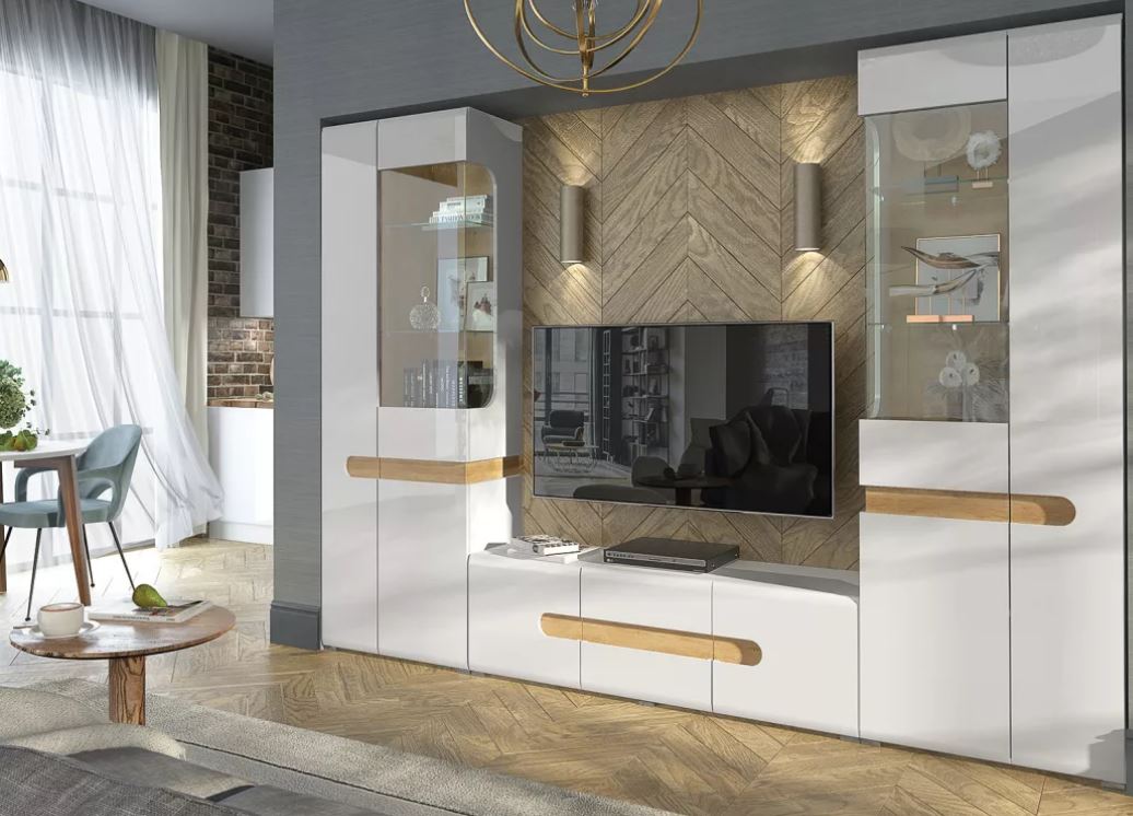 Стильная мебель Катания и Слайд отлично впишутся в современную гостиную. Глянцевые фасады белого цвета с тёплым акцентом в виде вставки под дерево придаёт коллекции Катания особенную изюминку. А белоснежная стенка Слайд словно парит в воздухе. Для любителей натуральных тонов подойдёт стенка Слайд в цвете дикий дуб.