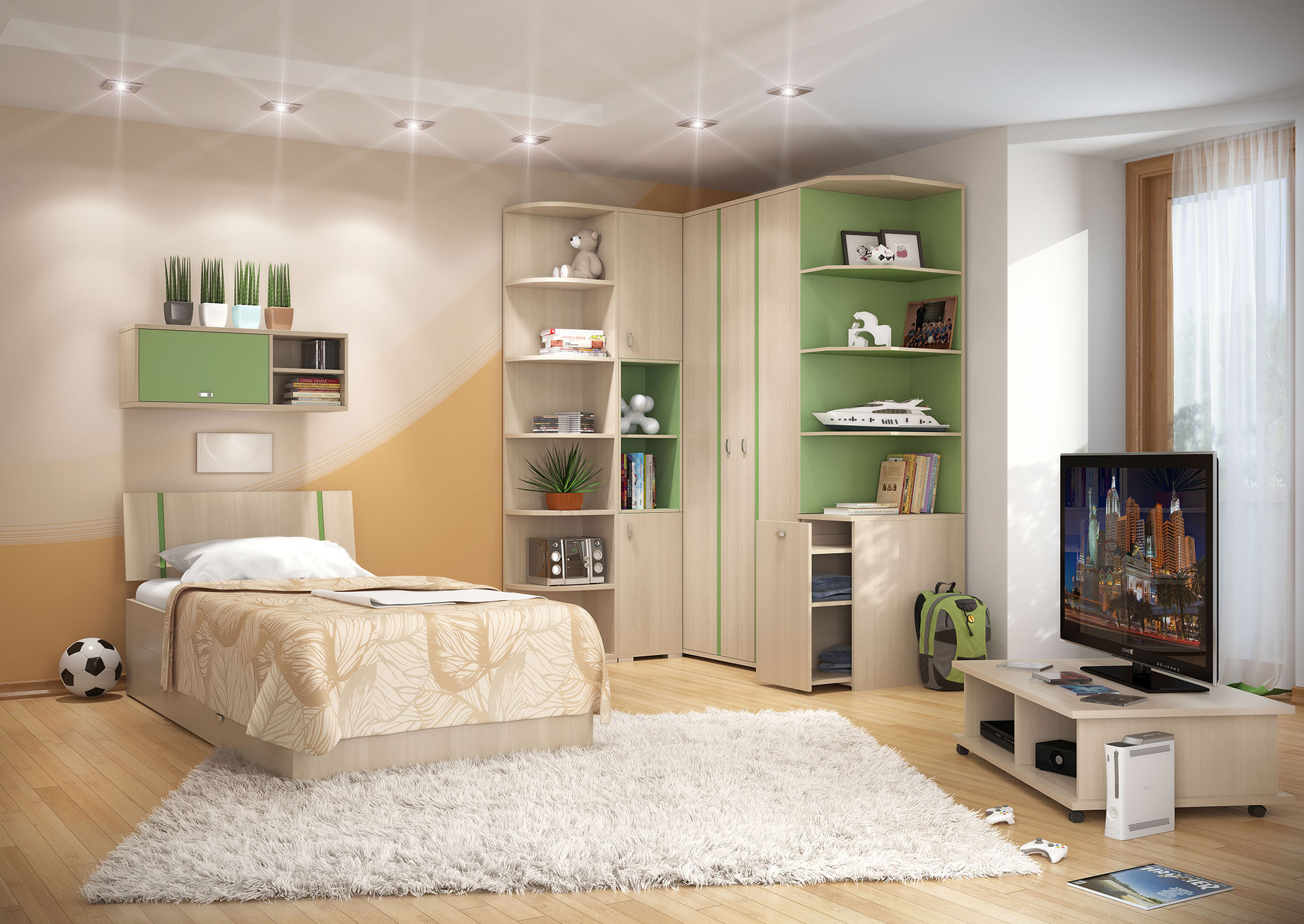 Цвет мебели: Ясень / Зеленый