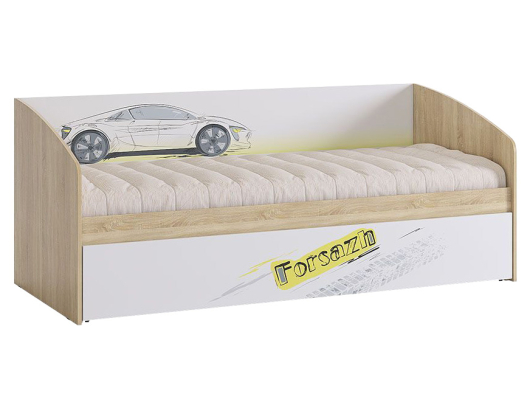 Кровать Форсаж прекрасно впишется в интерьер уютной детской комнаты. Изделие предоставит необычайно удобное спальное место, где ребенок после трудных и насыщенных дней сможете расслабиться, отдохнуть и набраться сил. Кровать оснащена просторным ящиком для белья, который можно использовать в качестве дополнительного спального места.