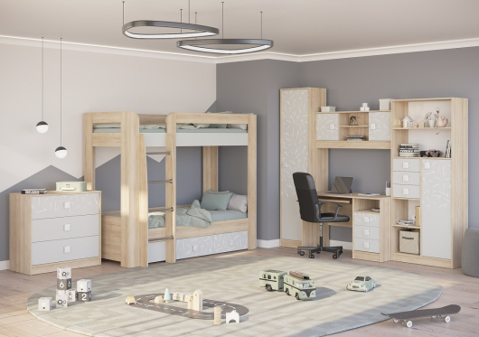 - Кровать 2-х ярусная с двумя ящиками Микки Ш2070 х Г1020 х В1755 мм;