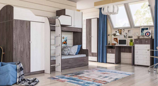 - Кровать 2-х ярусная №2 Омега 18 Ш2945 х Г1105 х В2105 мм 2 спальных места: 2000х800 мм