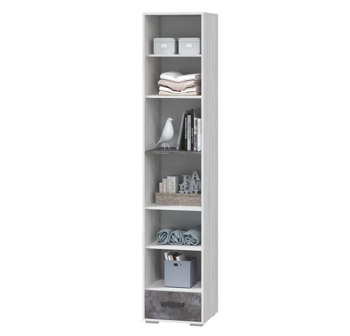 Шкаф для книг Оливер выполнен в современном дизайне и станет одним из дополнительных элементов в детской или подростковой комнате. Модель используется как система хранения книг, учебников, аксессуаров. Изделие оснащено открытыми и закрытыми нишами, полочками и одним вместительным выдвижным ящиком. -