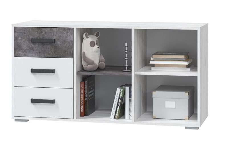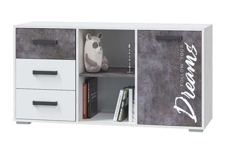 Тумба с дверцей и ящиками Оливер выполнена в современном дизайне и станет одним из дополнительных элементов в детской или подростковой комнате. Модель используется как система хранения различных вещей. Изделие оснащено открытой и закрытой нишами с полочкой и тремя вместительными выдвижными ящиками. -