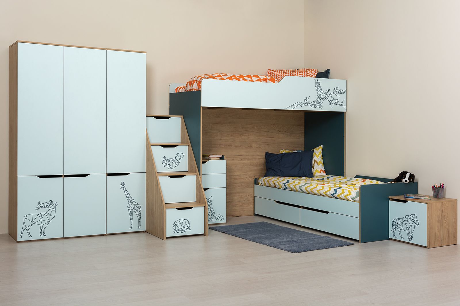 - тумба прикроватная Гудвин 13.77 - Ш508 х Г447 х В462 мм.Детская Гудвин (вариант 2) поможет со вкусом обустроить необычной уютную и стильную комнату для ребенка. Удобные спальные места позволят расслабиться, отдохнуть и набраться сил. Вместительный шкаф предназначен для хранения детского гардероба. Лестница сделает безопасным подъем и спуск со второго яруса, а выдвижные ящики под ступенями пригодятся для хранения множества игрушек и других важных вещей. За распашными дверьми шкафов находятся штанги для вешалок-плечиков с безупречно выглаженной одеждой, а полки предназначены для хранения одежды, постельного и нижнего белья, различных аксессуаров и коробок с обувью.