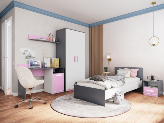 - тумба Кэнди КТ-1 - Ш400 х Г405 х В400 мм.Детская Кэнди (вариант 3) поможет обустроить достаточно уютную и яркую комнату для проживания вашего ребенка. Кровать предоставит необычайно удобное спальное место, где вы после трудных и насыщенных дней сможете расслабиться, отдохнуть и набраться сил. Компактная тумба позволит держать все важные и необходимые предметы около кровати. Широкая столешница позволит расположить все необходимое под рукой и при этом спокойно делать записи или читать книгу. Открытая ниша и тумба с дверцей предназначены для размещения разнообразных канцелярских и прочих принадлежностей. За распашными дверьми шкафа находятся две штанги для вешалок-плечиков, а боковые полки предназначены для сложенной одежды и белья. Мебель Кэнди поможет создать интерьер «с характером» и разбавит однообразие и будничность.