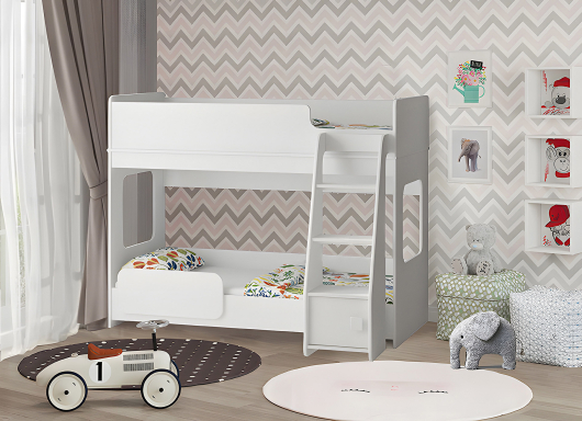 Детская Буратино 3 отличное решение для детской комнаты для двоих детей. Обратите внимание на безопасную лестницу, по ней ребёнок сможет подниматься спать без угрозы упасть. Верхняя и нижняя кровать имеет удобный бортик безопасности. -
