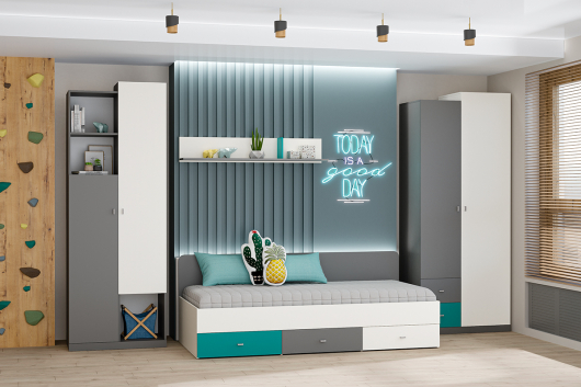 Детская Клео 1 - ощущение свободы, простор и краски. Она умело сочетает в себе стильный дизайн, комфорт и функциональность, покоряя с первого взгляда смелых, креативных и изобретательных.