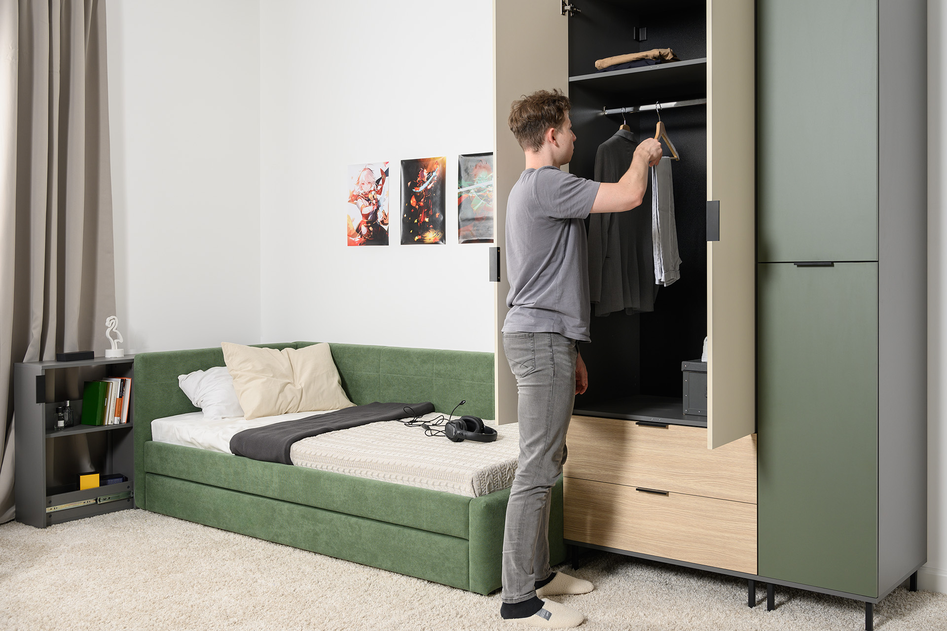 - Шкаф-пенал Марвэл 16.316.02 Темно-серый/Плэйн/Дымчатый Зеленый Ш400 х Г575 х В2286 мм