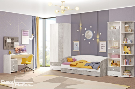 Детская Микс 2 сочетание светлых серых тонов с различными текстурами и материалами поможет создать уютную и комфортную детскую. Детская Микс 2 имеет ящики полного выдвижения и газовые кронштейны и амортизаторы. -