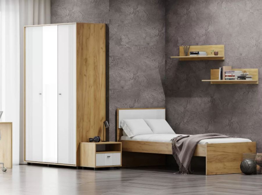 Детская комната Милан в сочетании древесного цвета с белым — это идеальное решение для создания гармоничного, уютного пространства, которое понравится ребенку любого возраста. Такая палитра подходит как мальчикам, так и девочкам, легко адаптируется под разные стили оформления. -