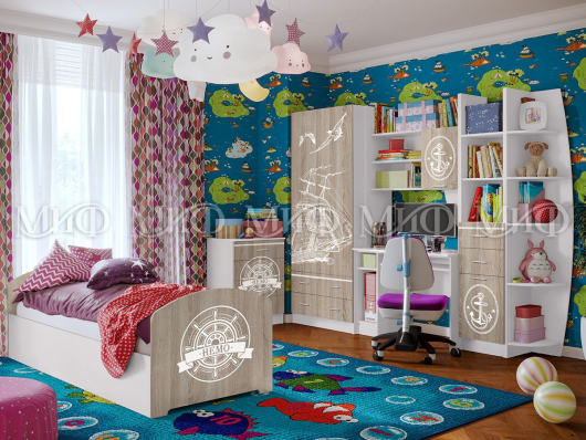 Детская Немо с морским дизайном может стать ярким акцентом в комнате и вдохновлять ребёнка на мечты о приключениях и путешествиях. Вся мебель очень функциональная, для удобства ребёнка продумана каждая деталь. -
