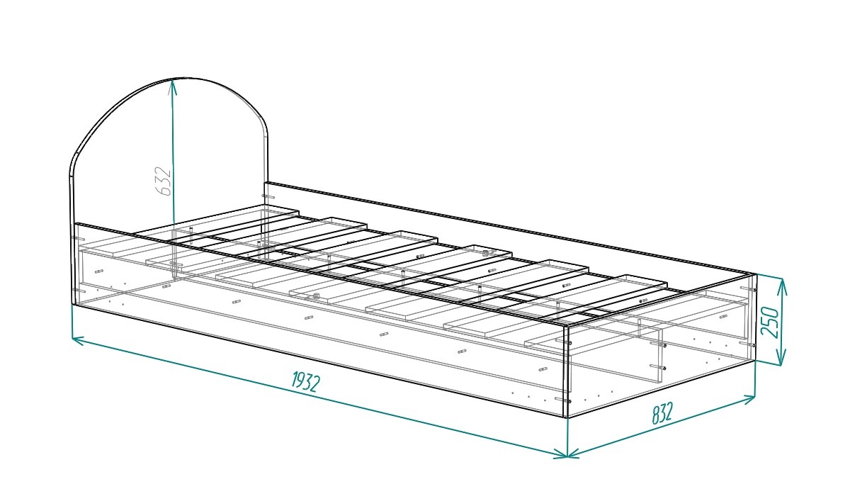- кровать Стиляга - Ш832 x Д1932 х В632/832 мм; размеры спального места: 800 х 1900 мм.