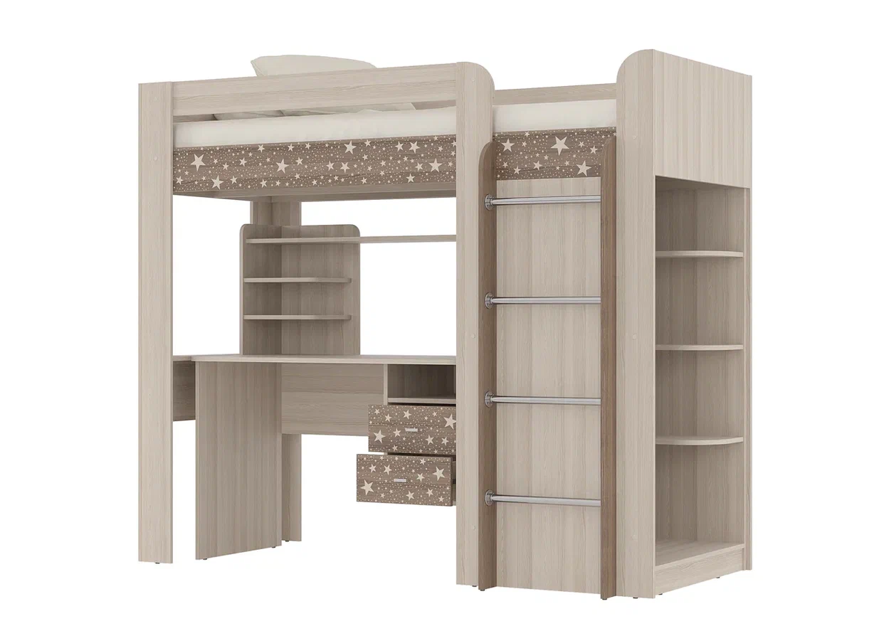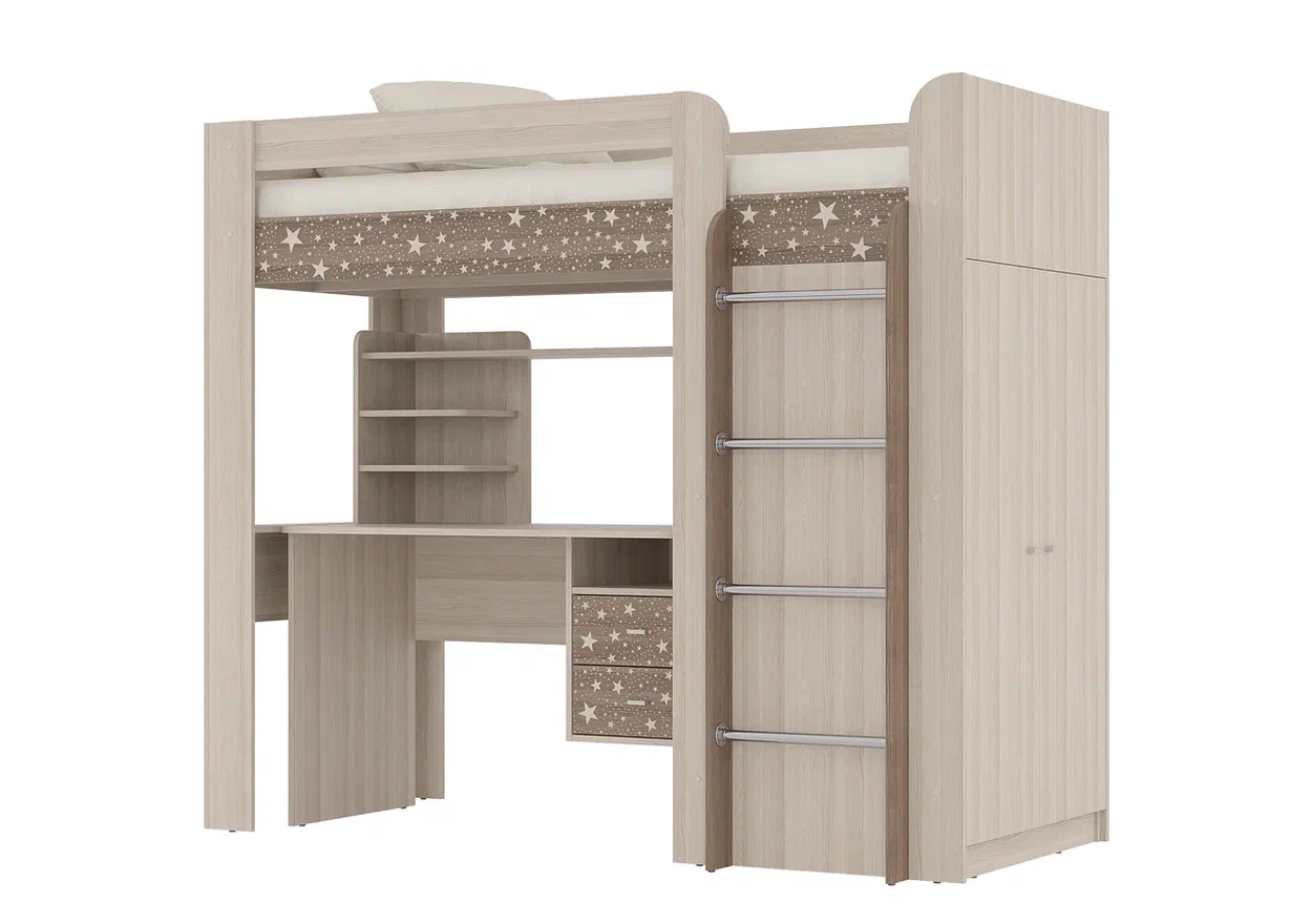 Кровать-чердак Скай 4-2020 с письменным столом Скай 6-0620. отличное решение для вашего ребёнка. Безопасный бортик, вместительный шкаф, широкая письменная поверхность. Шикарная детская Скай подойдёт и мальчику, и девочке. -