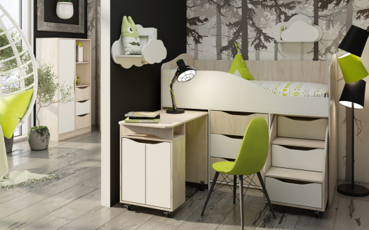 - полка навесная малая Миндаль - Ш526 х Г232 х В300 мм.Детская Миндаль идеально подойдет для интерьера комнаты вашего ребенка. Стол поможет обустроить удобное место, где ребенок будет с удовольствием учиться, рисовать и выполнять домашние задания. Сбоку за распашными дверцами находятся полки, которые пригодятся для размещения книг, канцелярских предметов и других принадлежностей. Лестница позволит безопасно и без особых трудностей подняться или спуститься с верхнего яруса. Достаточно комфортное спальное место поможет расслабиться после трудных дней, отдохнуть и набраться сил. Большое количество выдвижных ящиков создано для хранения постельного белья, игрушек и сложенной одежды. Навесные полки предоставляют дополнительное место для аккуратного хранения предметов, которые хочется видеть каждый день.
