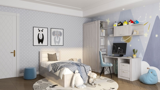 Детская Монако (вариант 1) поможет обустроить достаточно уютную комнату для вашего ребенка. Письменный стол поможет создать достаточно удобное рабочее место. Широкая столешница позволит разместить большое количество необходимые предметов и спокойно работать над домашними заданиями. Два выдвижных ящика и открытая ниша предоставят достаточно места для размещения всех необходимых принадлежностей. Достаточно комфортное и широкое спальное место предоставит возможность расслабиться, отдохнуть и набраться сил после насыщенных дней. За распашными дверьми шкафа находится штанга для вешалок-плечиков со школьной формой и другой безупречно выглаженной одеждой. Полки пригодятся для сложенной одежды, постельного и нижнего белья, разнообразных аксессуаров и коробок с обувью. -