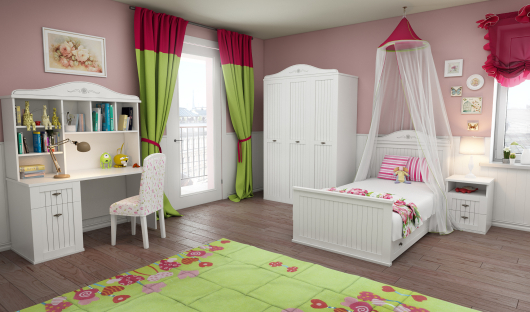 Детская Николь поможет обустроить уютную и достаточно комфортную комнату для вашего ребенка. Стол письменный поможет создать достаточно удобное рабочее место, где ребенок будет с удовольствием выполнять домашние задания, а тумба с дверцей и полка пригодятся для хранения всевозможных школьных и канцелярских принадлежностей. Шкаф 3-х дверный с широкой штангой для вешалок-плечиков и множеством полок внутри создан для бережного хранения одежды, постельного и нижнего белья, коробок с обувью и разнообразных аксессуаров. Удобное спальное место кровати поможет ребенку отдохнуть, расслабиться и набраться сил после трудных и насыщенных дней, а дополнительный ящик пригодится для хранения множества игрушек или постельного белья. Тумба прикроватная оснащена двумя вместительными выдвижными ящиками, которые созданы для хранения всех необходимых вещей около кровати.