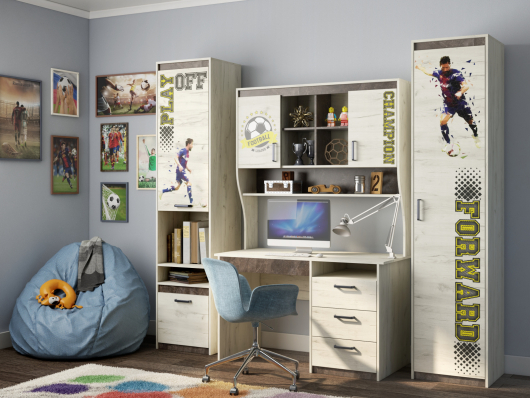 - пенал Прага - Ш484 х Г440 х В2150 мм.Детская Прага (вариант 2) поможет обустроить достаточно уютную комнату для проживания вашего ребенка. Стол поможет создать и обустроить необычайно комфортное место для работы или учебы. Широкая столешница позволит расположить все необходимое под рукой и при этом спокойно делать записи или читать книгу. Выдвижной ящик и тумба с дверцей предназначены для размещения разнообразных канцелярских и прочих принадлежностей. За распашной дверью пенала находится штанга для вешалок-плечиков. Антресольная и нижняя полки пригодятся для размещения сложенной одежды, постельного и нижнего белья, различных аксессуаров и коробок с обувью. Мебель Прага актуальна и универсальна благодаря прямым и строгим линиям, трендовому дизайну модулей.