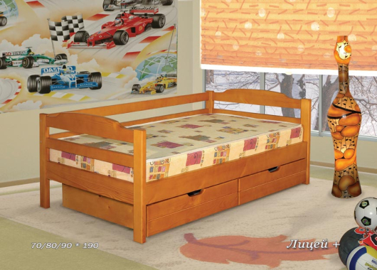 Кровать Лицей+ создана специально для детей. Она идеально впишется в любой интерьер детской комнаты и подарит вашему ребенку комфорт, уют и здоровый сон. Изготовлена кровать из массива сосны, а значит,из экологически чистых материалов, поэтому вы можете не беспокоиться за здоровье вашего чада.Стоит заметить, что под спальным местом находятся два вместительных ящика для постельного белья.