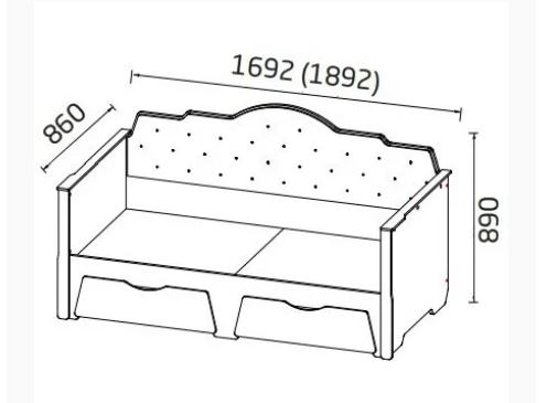 Размеры: Ш860 х Д1692/1892 х В890 мм, спальное место 800х1600 или 900х1800 мм
