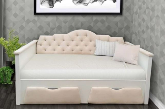 Кровать-софа Фея стильная модель для вашей детской. Мягкая спинка и декоративные элементы придают кровати Фея особый шарм. -