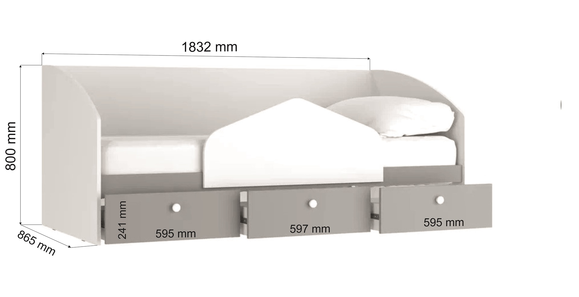 Ширина, мм 1832 Глубина, мм 865 Высота, мм 800 ?Спальное местоШирина х Длина в мм800х1800 ?МатериалМатериал изготовленияЛДСП Производитель Вариантов исполнения 1 -
