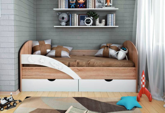 Кровать детская Космос выполнена из современных, качественных материалов. Бортик с тематикой Космоса добавит изюминку детской комнате. Кроватка Космос может быть в 2 размерах.
