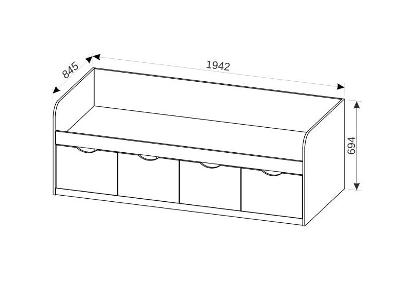 Размеры: Ш845 х Д1942 х В694 мм, спальное место 800х1900 мм