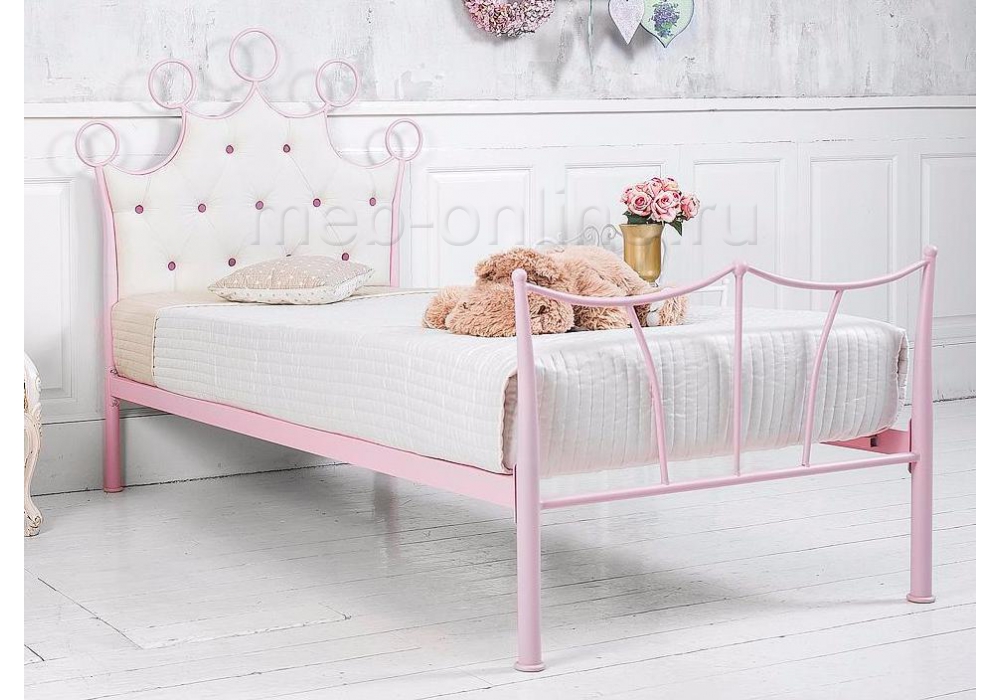 Ваша маленькая принцесса подросла? Тогда мы нашли Вам то, что достойно вашего внимания. Кровать Queen для настоящих царевн, королев и принцесс, только по цене доступной каждому. Кроватка имеет полноценное спальное место, мягкую спинку и необычный для металла девчоночий окрас. Ваша малышка будет счастлива спать на такой кровати до самого института. Кровать Queen имеет ортопедическое основание. Необходим только матрас. -