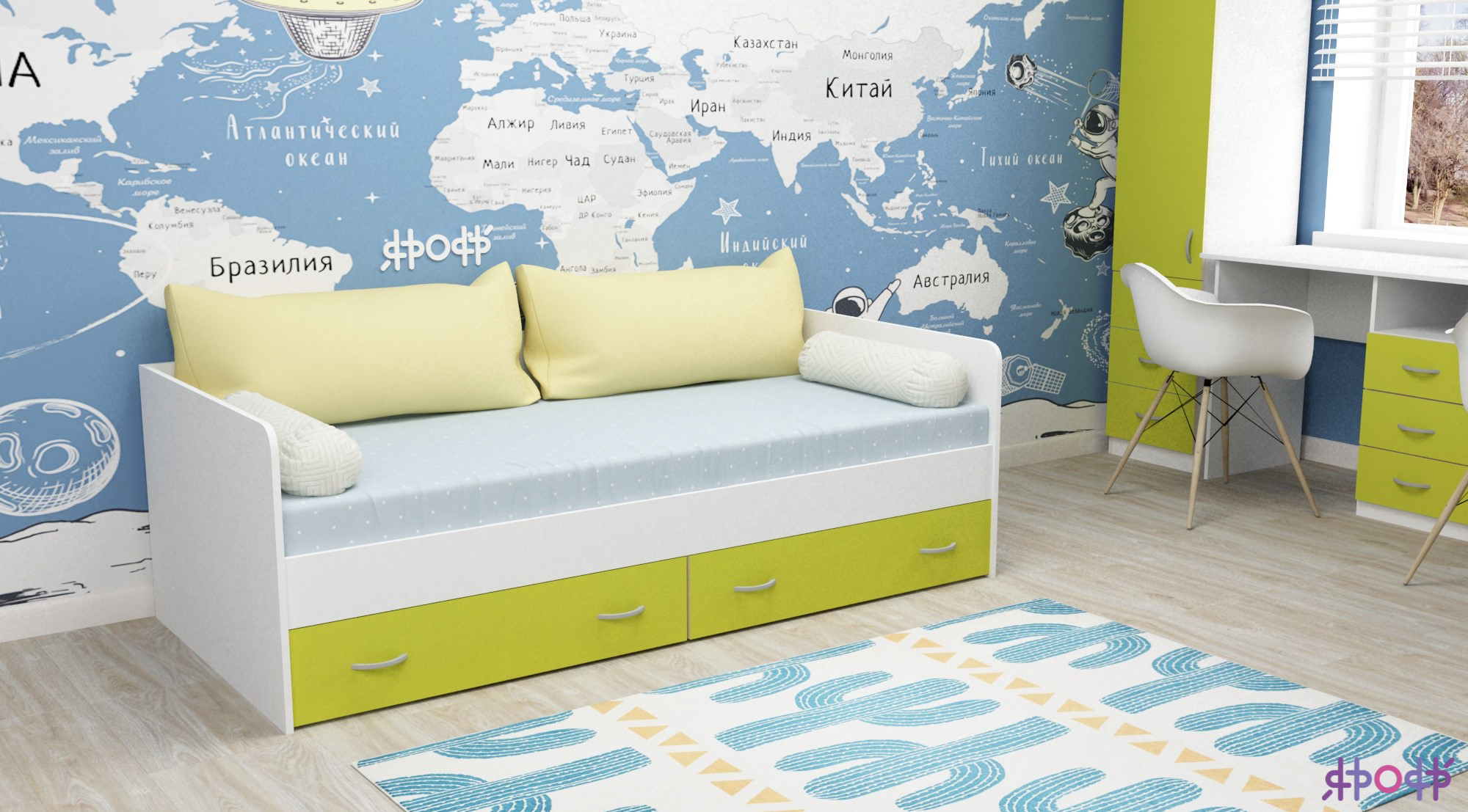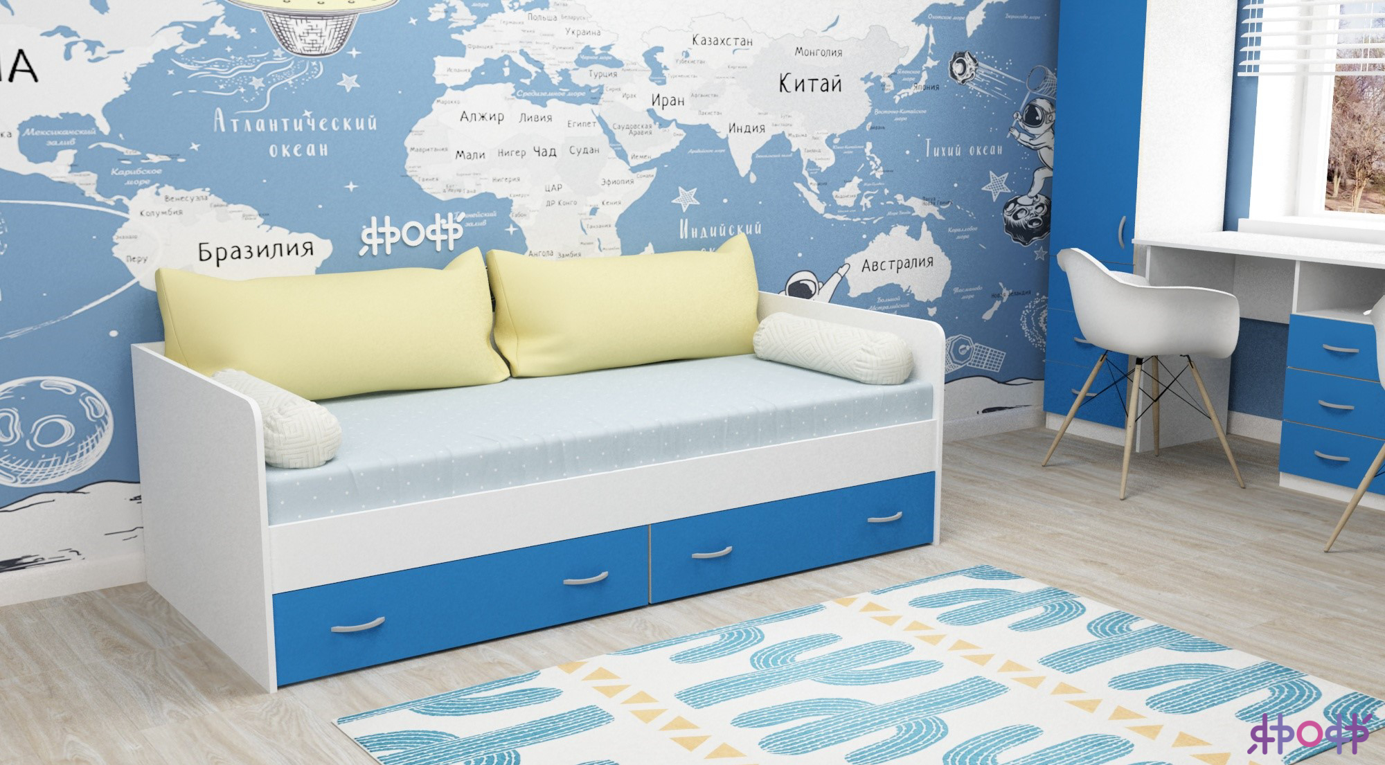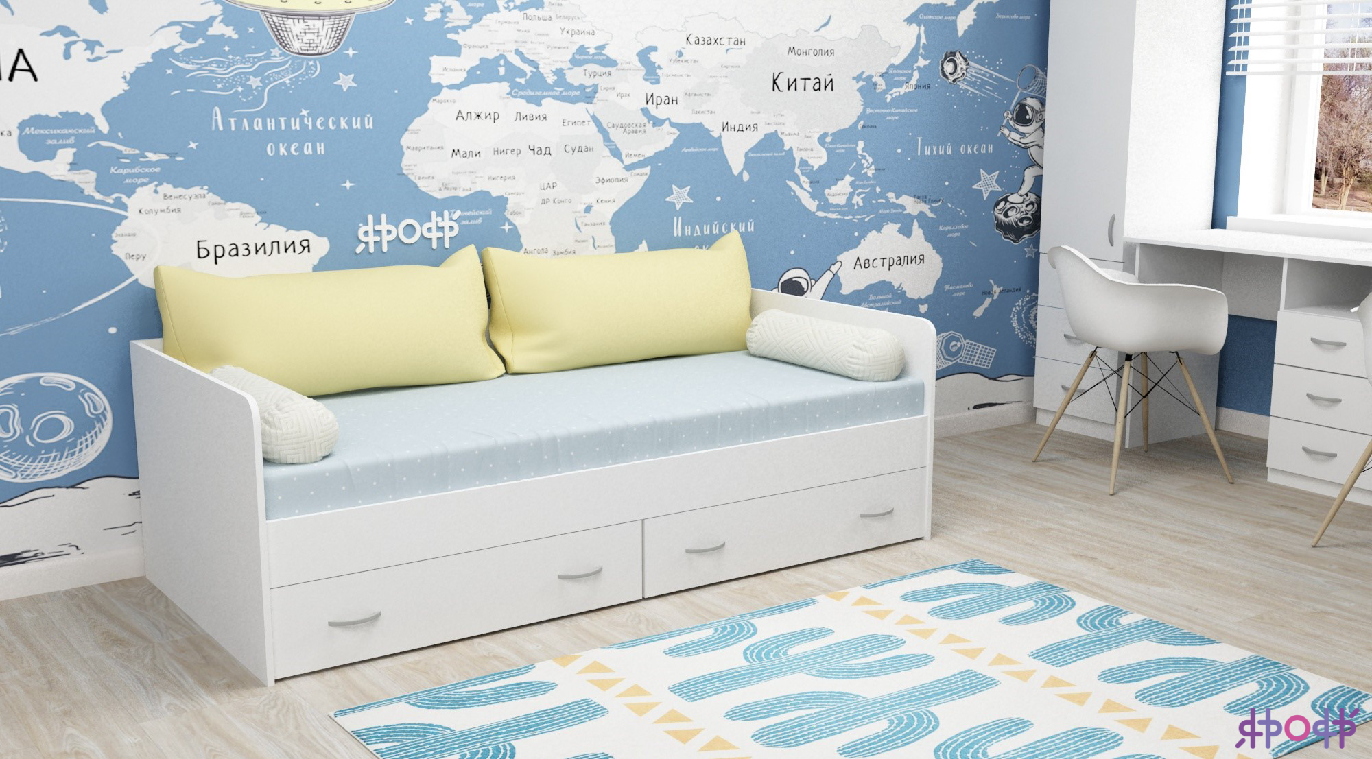 Кровать с выкатными ящиками Ярофф стильная и современная. Изготовлена из высококачественных материалов. Имеет полноценное спальное место, будет служить ребёнку долгие годы. На такую кровать с комфортом ляжет и взрослый, когда будет укладывать ребёнка. Кровать с выкатными ящиками Ярофф имеет место для игрушек и основание под матрас. -