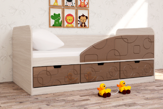 Кровать 4 Бриз прекрасно впишется в интерьер уютной детской комнаты. Изделие предоставит необычайно удобное спальное место, где вы после трудных и насыщенных дней сможете расслабиться, отдохнуть и набраться сил. Три вместительных выдвижных ящика пригодятся для размещения детских игрушек и постельного белья.