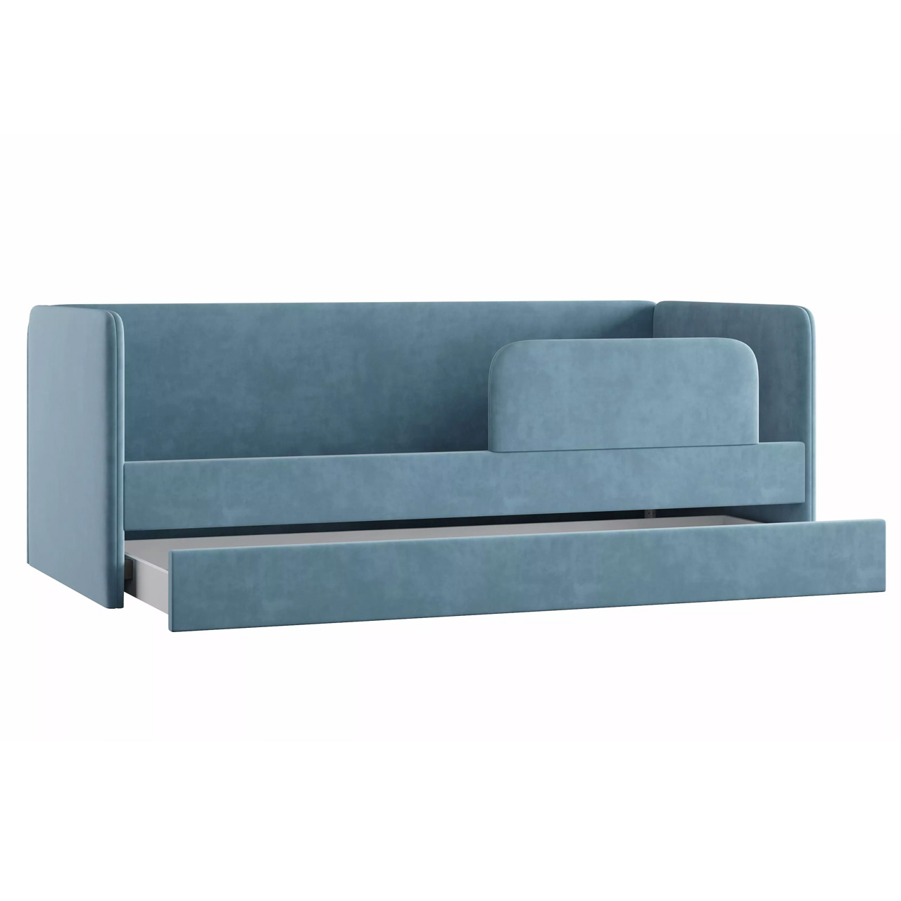 Кровать Молли стильное решение для детской комнаты. Мягкая обивка обеспечит комфортный сон. Бортик защитит от падения. Изюминкой является ящик для белья, который можно использовать как дополнительное спальное место. Кровать Молли оснащена ортопедическим основанием. -