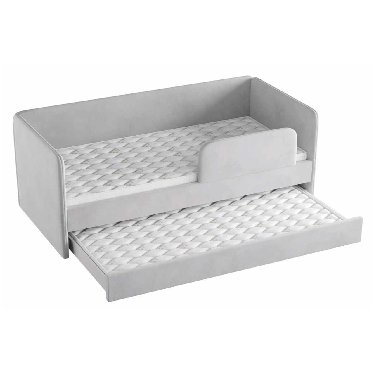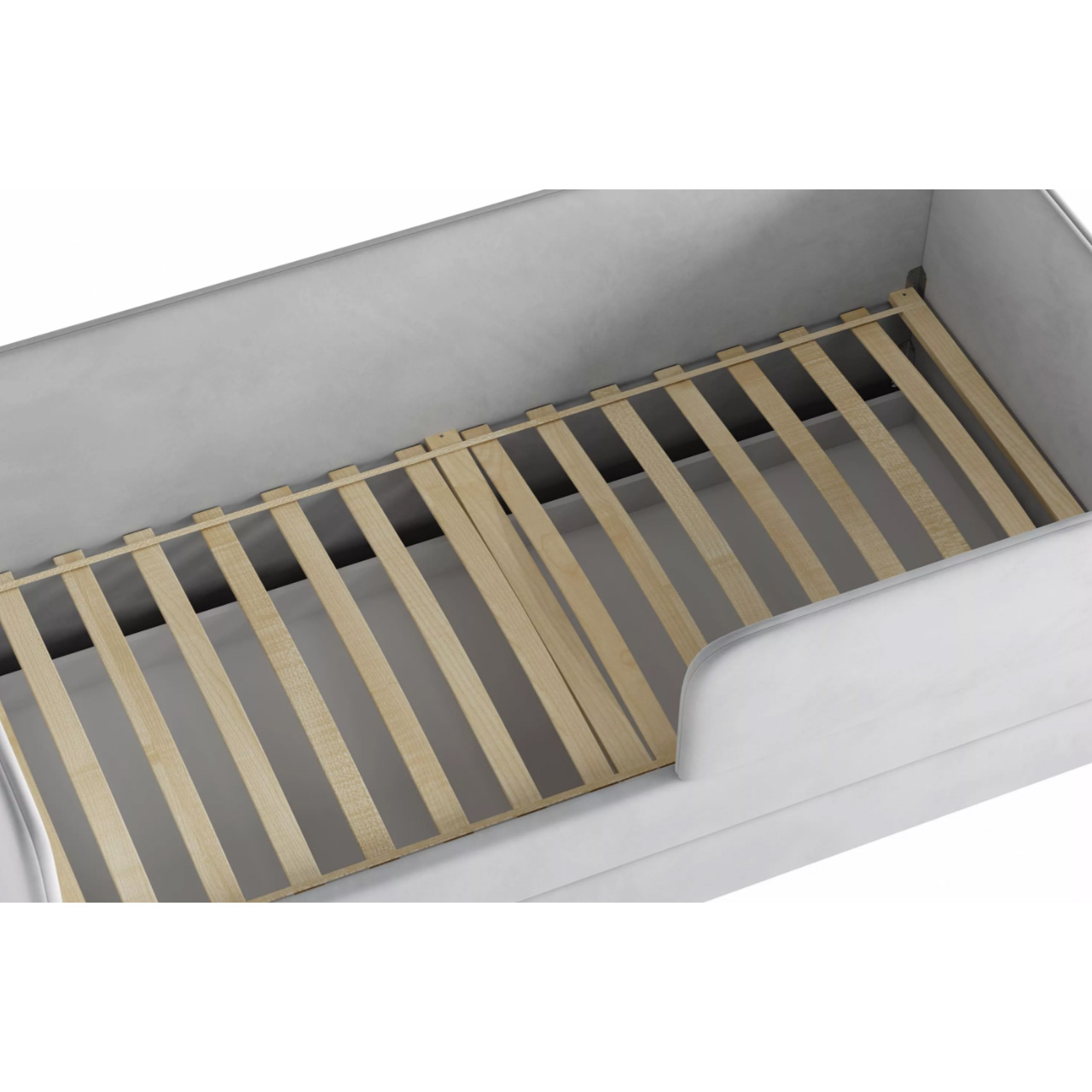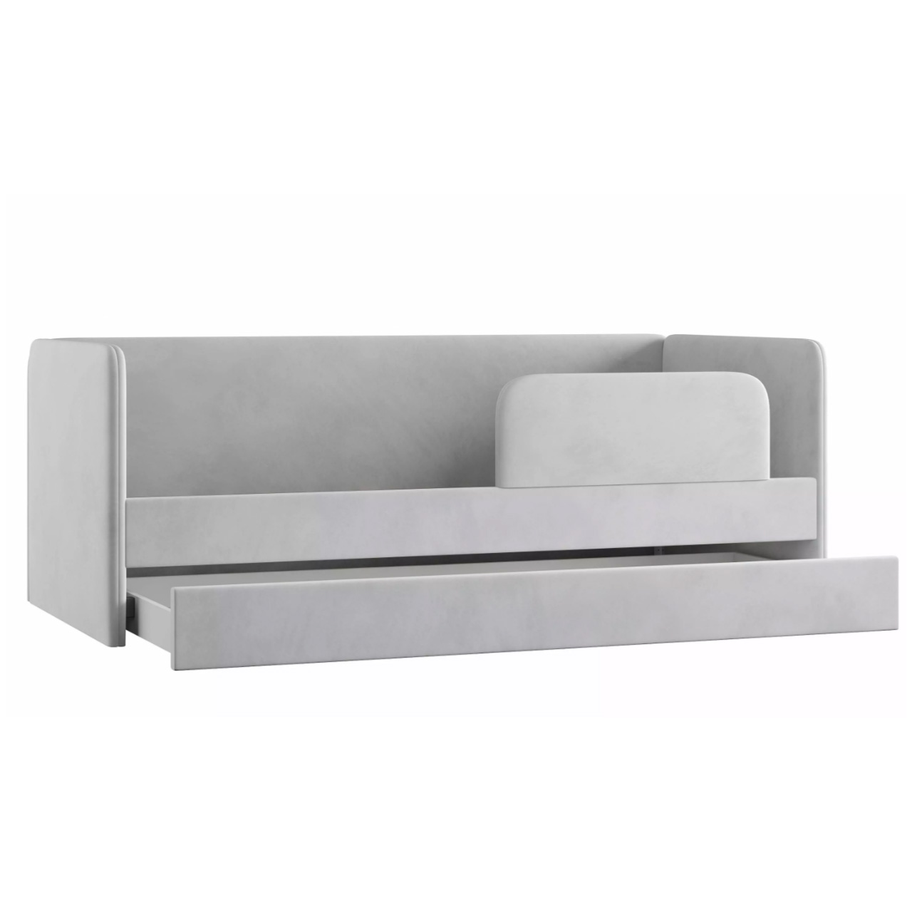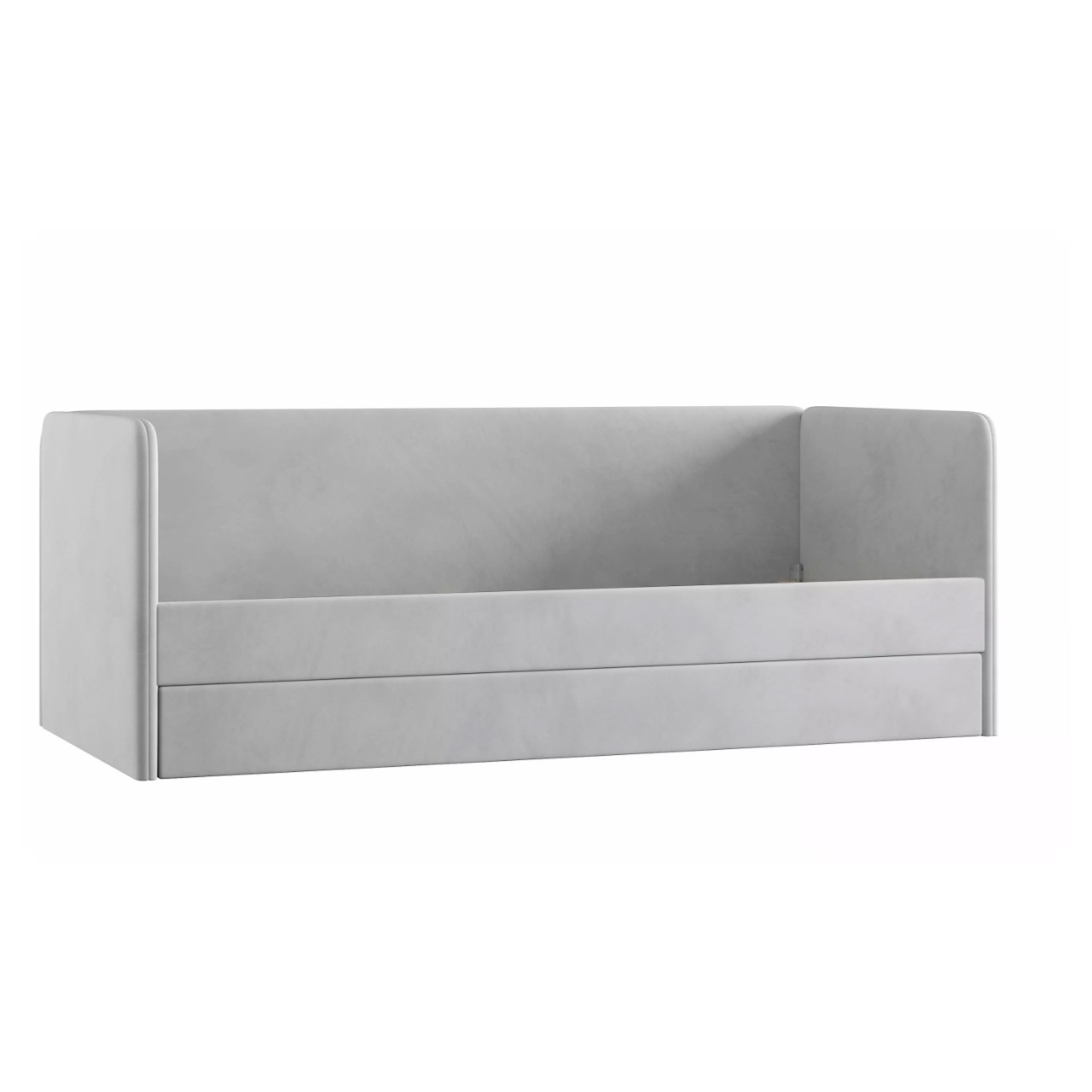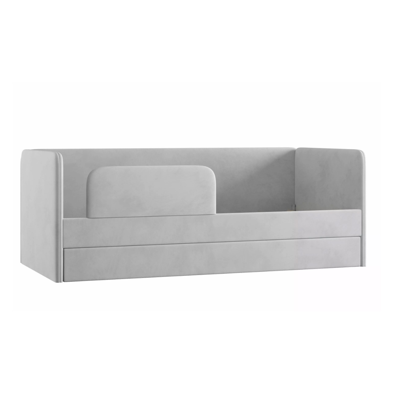 Кровать Молли стильное решение для детской комнаты. Мягкая обивка обеспечит комфортный сон. Бортик защитит от падения. Изюминкой является ящик для белья, который можно использовать как дополнительное спальное место. Кровать Молли оснащена ортопедическим основанием. -