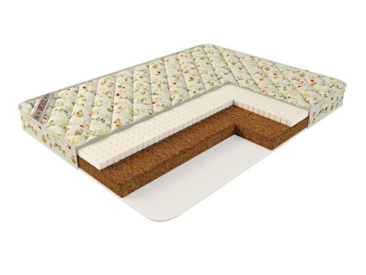 Детский ортопедический матрас Королевский сделан на основе кокосовой койры толщиной 6 см. Слой натурального латекса 3 см с одной стороны. Жесткая кокосовая сторона подходит для детей с первых дней жизни. Более мягкая латексная сторона рекомендована детям после трех лет. Качественный чехол сделан из поликоттона с цветным рисунком.