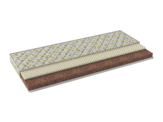- Состав слоев (нижняя сторона): кокосовая койра латексированная h - 3 см, мемориформ рельефный h - 3 см (вязко эластичный PPU) пр-во Литва.