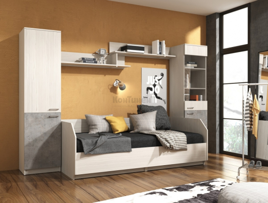 Детская Ассоль 8 идеально подойдет для интерьера вашей комнаты. На навесных полках будут гармонично смотреться яркие фотографии, памятные сувениры, любимые игрушки и заслуженные грамоты. Достаточно комфортное спальное место поможет расслабиться после трудных дней, отдохнуть и набраться сил. Высокое изголовье позволит перед сном удобно расположить и почитать интересную книгу или посмотреть новый фильм. Благодаря подъемному механизму, под спальным местом находится отделение, которое пригодится для хранения игрушек и постельного белья. За распашной дверью находятся полки, созданные для размещения сложенной одежды и других предметов гардероба. Мебель Ассоль создана для решительных и бесстрашных.
