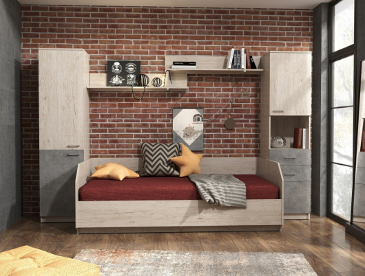 Детская Ассоль 9 идеально подойдет для интерьера вашей комнаты. На навесных полках будут гармонично смотреться яркие фотографии, памятные сувениры, любимые игрушки и заслуженные грамоты. Достаточно комфортное спальное место поможет расслабиться после трудных дней, отдохнуть и набраться сил. Высокое изголовье позволит перед сном удобно расположить и почитать интересную книгу или посмотреть новый фильм. Благодаря подъемному механизму, под спальным местом находится отделение, которое пригодится для хранения игрушек и постельного белья. За распашной дверью шкафа находятся полки, созданные для размещения сложенной одежды и других предметов гардероба. Мебель Ассоль создана для решительных и бесстрашных.