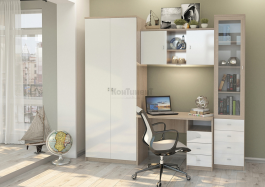 Детская Соло 2 идеально подойдет для интерьера вашей комнаты. За распашными дверьми 2-х дверного шкафа находится широкая штанга для вешалок-плечиков, а полки, скрытые в пенале, пригодятся для бережного хранения сложенной одежды, постельного и нижнего белья, обуви в органайзерах, а также различных аксессуаров. Стол поможет создать достаточно удобное рабочее место. Широкая столешница позволит разместить большое количество необходимые предметов и спокойно работать над домашними заданиями. Три выдвижных ящика предоставят достаточно места для размещения всех необходимых принадлежностей. Полки, скрытые за дверцей со стеклом, можно использовать для размещения любимых и интересных предметов. Мебель Соло является комфортной, уютной и безопасной.