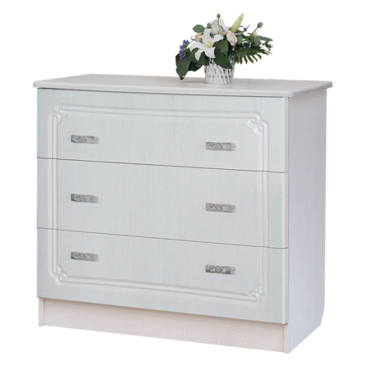 Комод №2 Тиффани станет гармоничным и достаточно функциональным дополнением интерьера детской комнаты. Три вместительных выдвижных ящика пригодятся как для хранения одежды и белья, так и для школьных принадлежностей и игрушек. Сверху на комоде будут отлично смотреться любимые игрушки, заслуженные грамоты и медали, а также различные оригинальные предметы декора.
